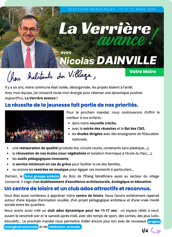 Ces contenus ont pour objectif de garantir transparence, information et accessibilité, afin que chaque citoyenne et chaque citoyen puisse se forger une opinion éclairée et suivre l’engagement porté pour la commune.
